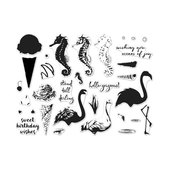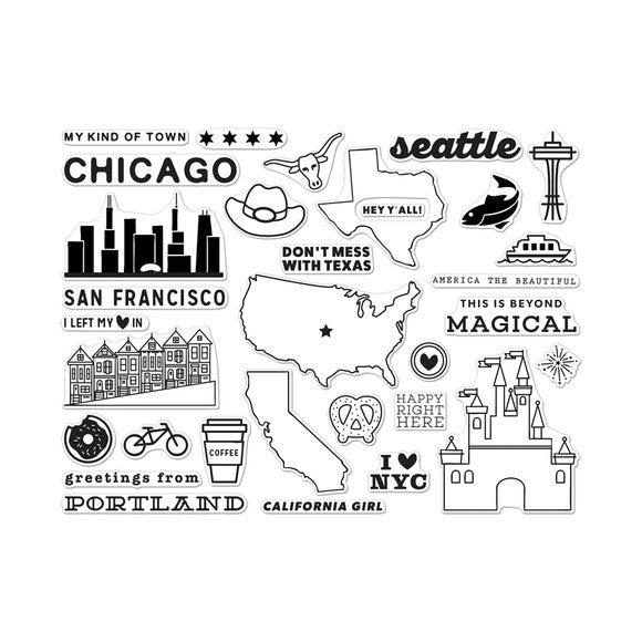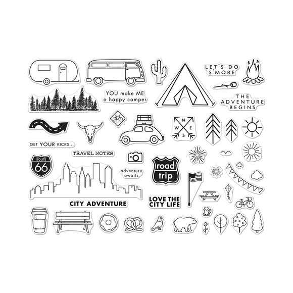 Four each of five brand new Hero Arts clear sets around travel and adventure themes. Buy comes with a three-card handstamped board and a clear teaching kit (SD455)